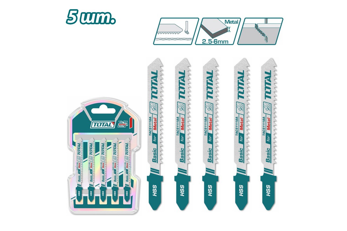 Пилка для лобзика 50 мм по металлу TOTAL TAC51118A (5 шт)
