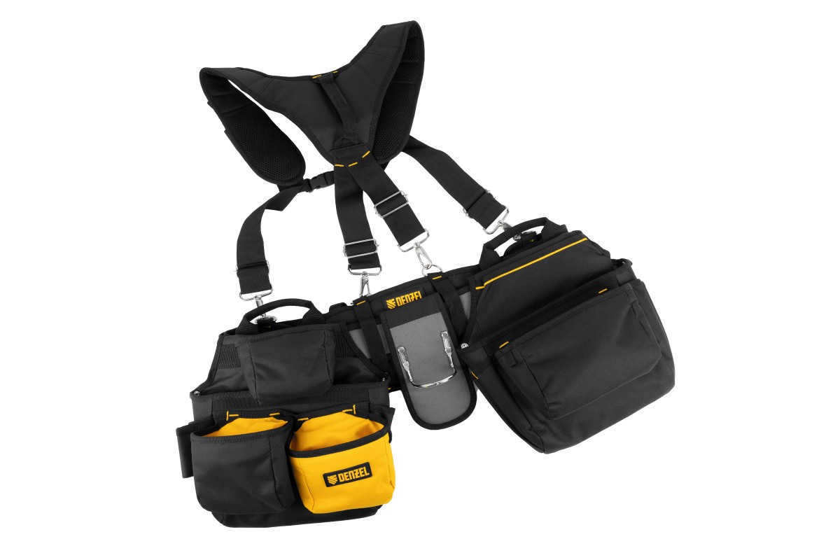 Пояс монтажника усиленный, с лямками, сумки поясные, держатель для молотка Denzel
