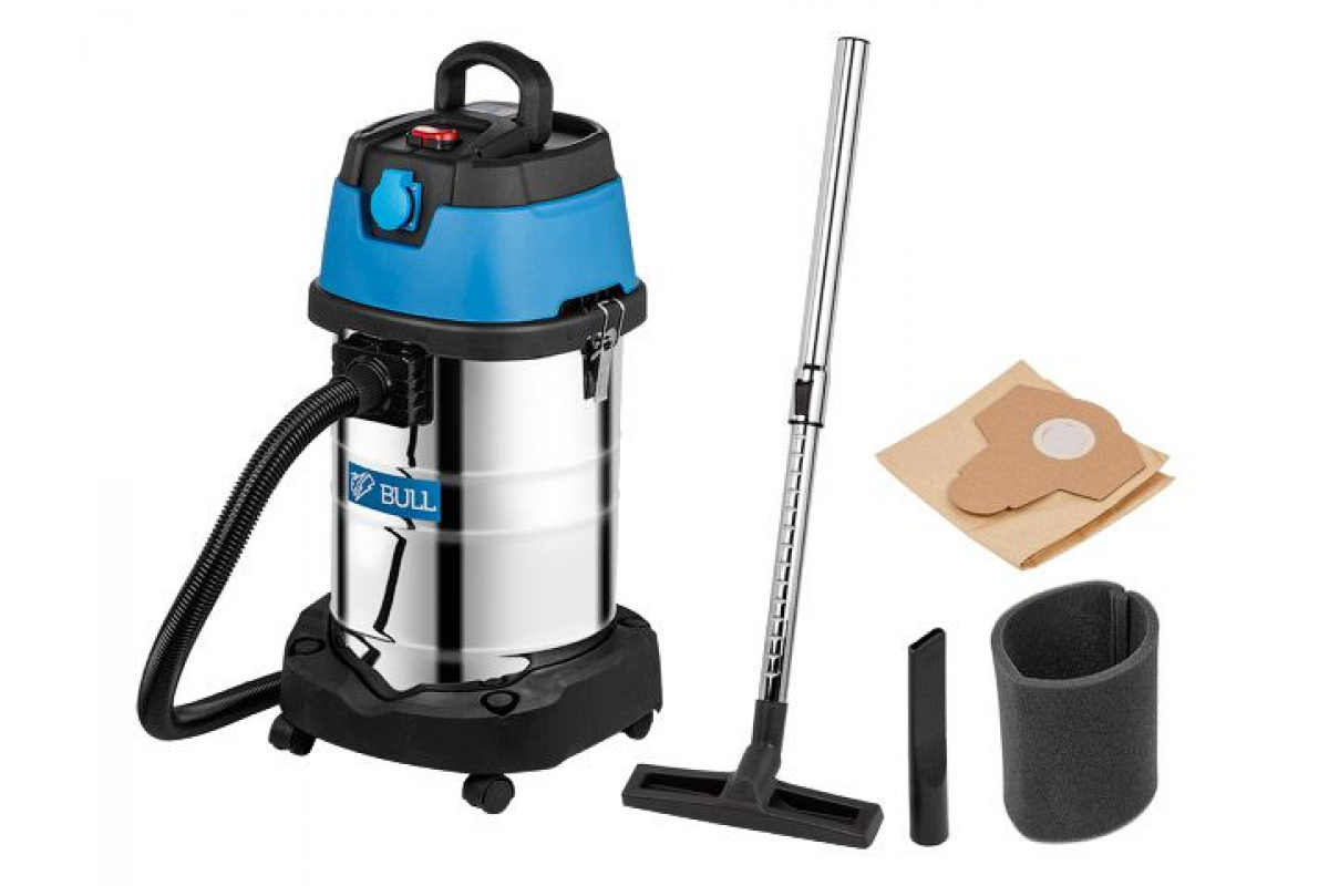 Пылесос BULL AS 3001 + аксессуары 1400 Вт, 30 л, 6м кабель, 3м шланг, HEPA, мануал., выдув (класс: L; очистка: мануальная; автовключение, выдув, 2 фил