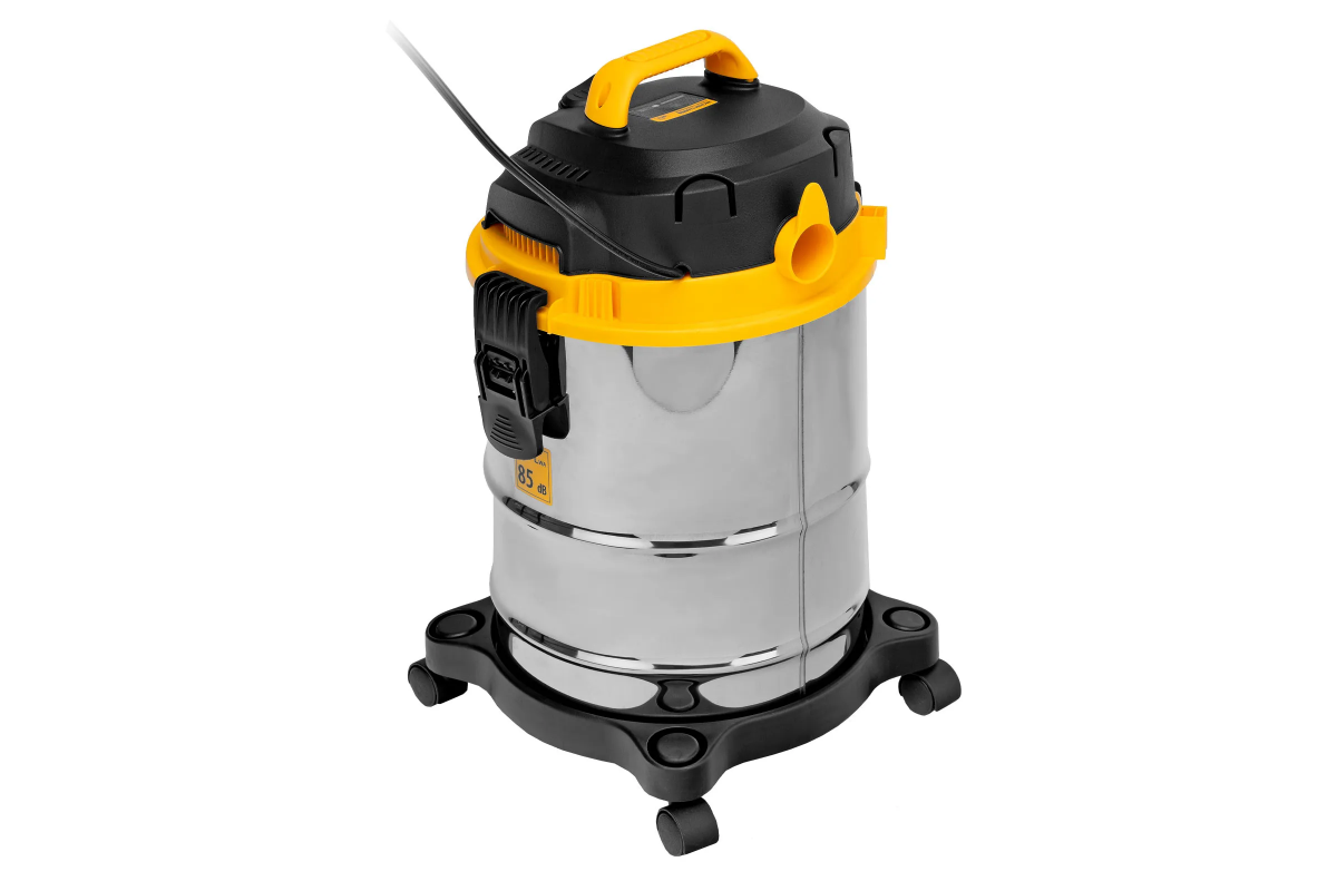Пылесос строительный Denzel SVC15 28201 мощностью 1200 Вт, с баком объемом 15 л и шлангом длиной 2 м, предназначен для уборки бетонной, кирпичной пыли, опилок, стружки, также предусмотрена функция сбора воды. Пылесос используется во время проведения строительных и ремонтных работ, будет полезен для поддержания чистоты в мастерской, гараже, производственном помещении.