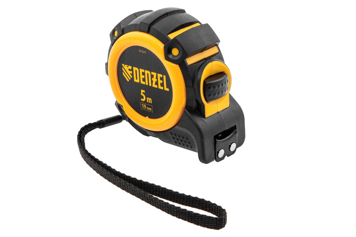 Рулетка 5м х 19мм, автоматич. фиксац., нейлон. покрытие, магнит. зацеп, двухстор. разметка Denzel
