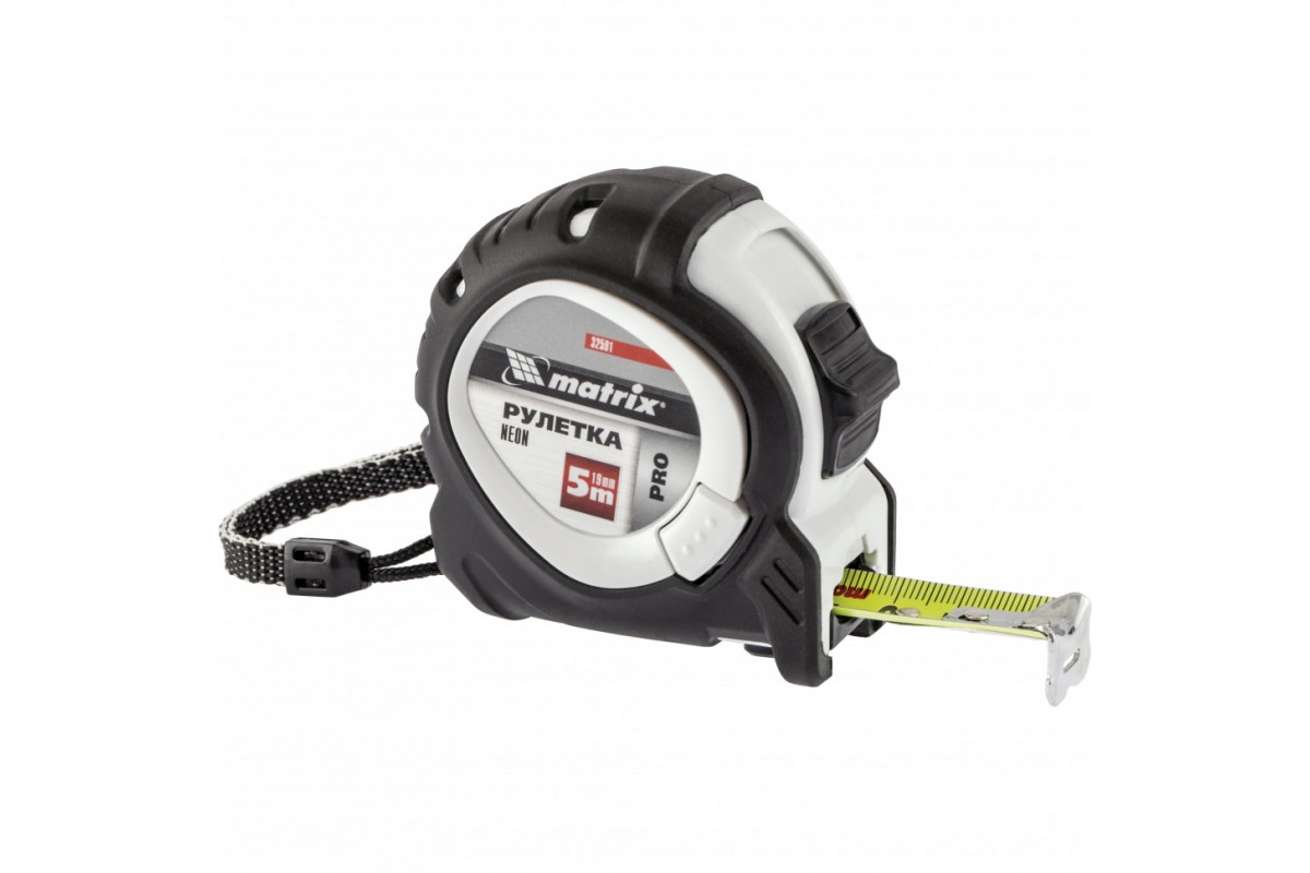 Рулетка Neon, 5 м x 19 мм, обрезиненный корпус, 3 фиксации, Pro Matrix