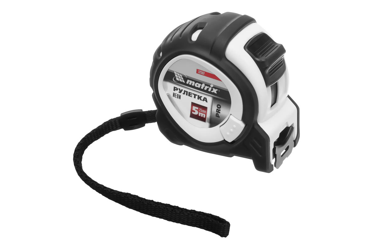 Рулетка Neon, 5 м x 25 мм, обрезиненный корпус, 3 фиксации, Pro Matrix
