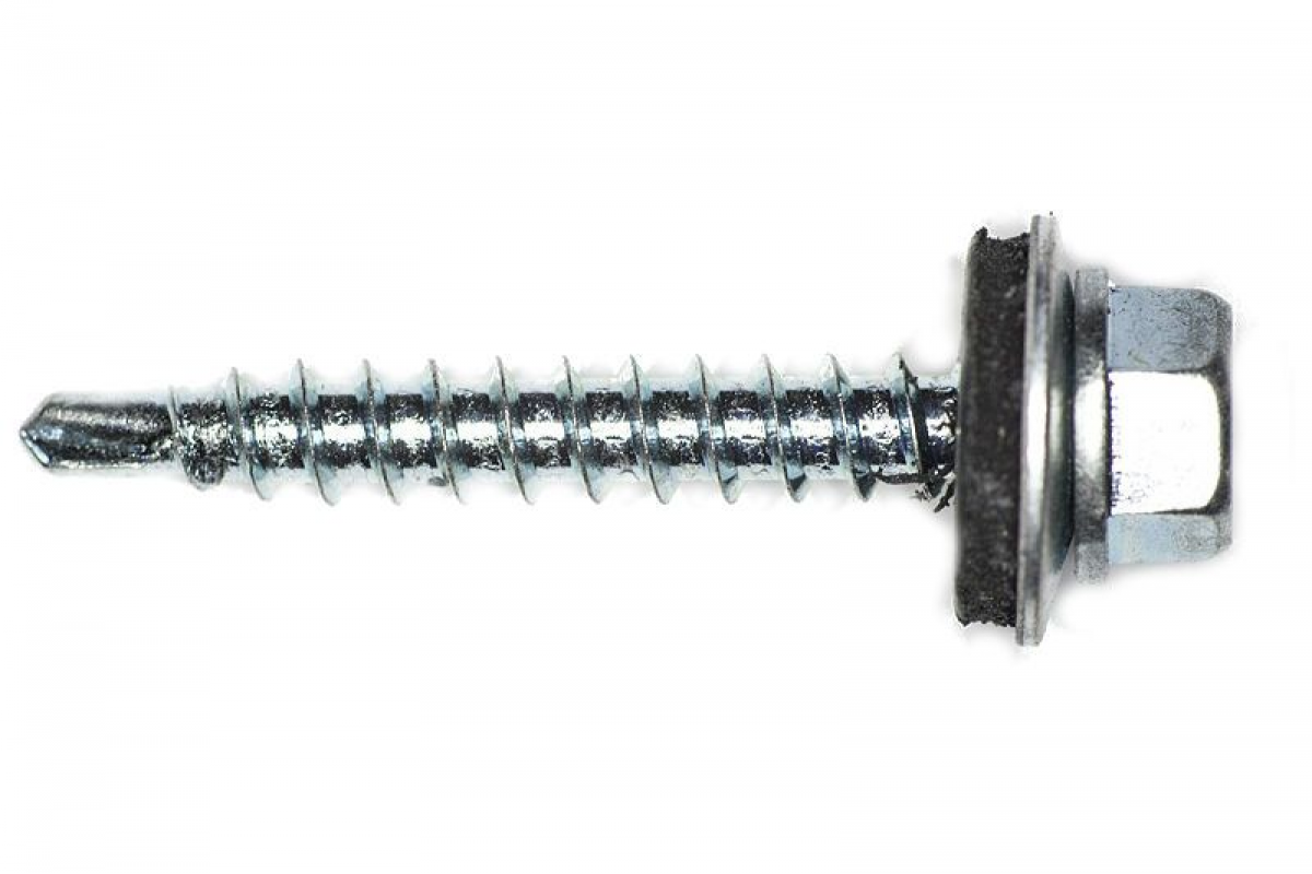 Шестигранная головка (D 8 мм) с шайбой и резиновой прокладкой, наконечник-сверло, оцинкованный. Толщина защитного покрытия 50-70 мкр.