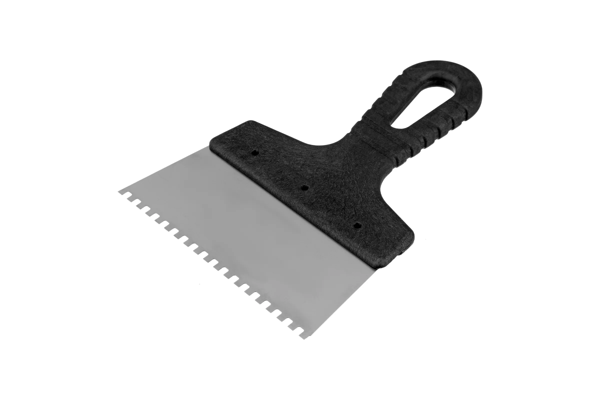 Шпатель Сибртех 85455 из нержавеющей стали, шириной 150 мм, с пластмассовой рукояткой и зубьями 4 х 4 мм, применяется во время проведения работ по укладке плитки, мозаики и т. д. Квадратные зубья облегчают нанесение клеевого состава, позволяя равномерно распределять его по поверхности. Зубья размером 4 х 4 мм рассчитаны на плитку площадью 50-100 см2.