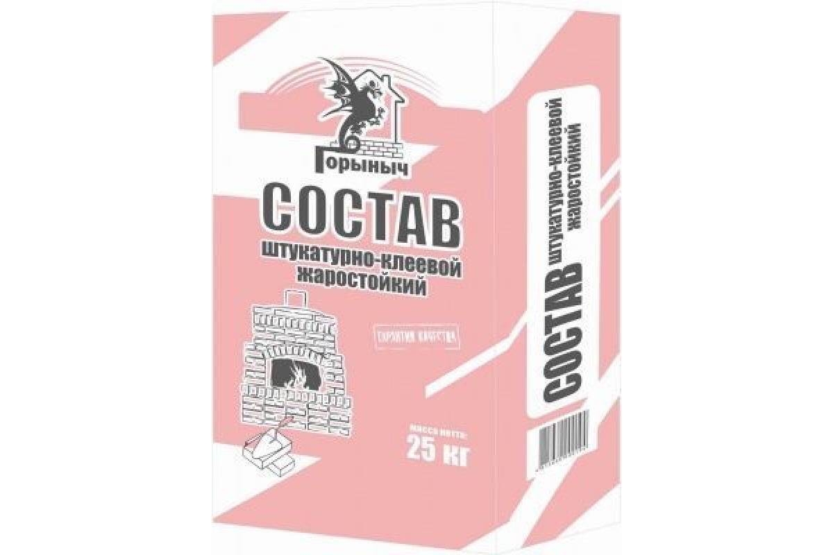Штукатурно-клеевой жаростойкий состав Горыныч применяется для облицовки печей и каминов, монтажа полов с подогревом, оштукатуривания стен печей из керамического, шамотного кирпича и других огнеупорных материалов. Стойкий к воздействию влаги и повышенных температур до +300°С. Рекомендуемая толщина слоя до 10 мм.