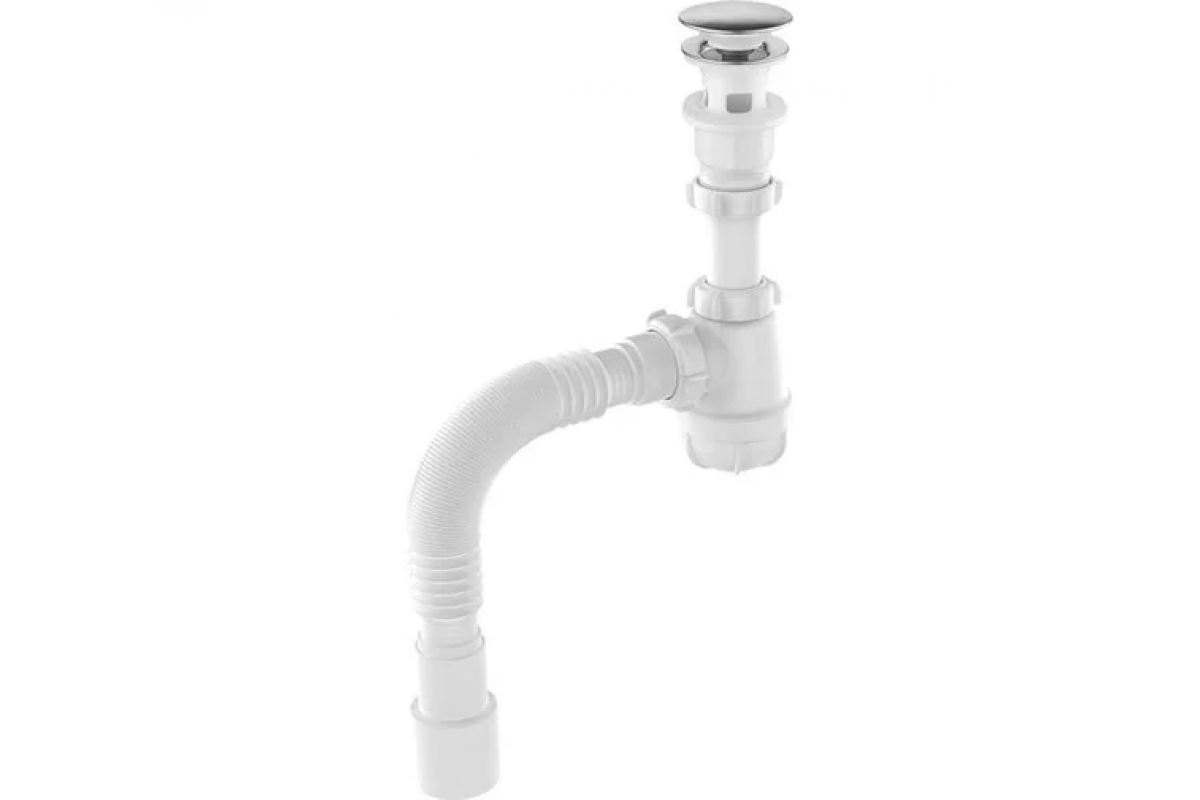 Сифон для раковин и умывальников с встроенным переливом, с диаметром сливного отверстия 45мм, под решетку 63-65мм. Корпус донного клапана выполнен из высококачественного полипропилена. Шляпка грибка и решётка выпуска – завальцованы нержавеющим металлом. Высота установки сифона регулируется. Скорость слива: 25 л/мин.