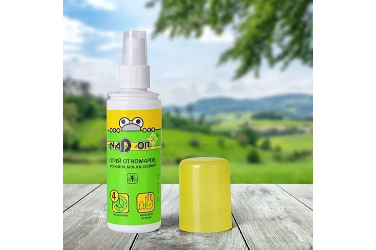 Спрей от комаров и мошек Nadzor 100мл, 127611 предназначен для защиты людей от кровососущих насекомых - комаров, москитов, мошек, слепней. Спрей необходимо нанести тонким слоем без втирания на открытые части тела: лицо, руки, шею, ноги. Время защитного действия от насекомых - до 4 часов.