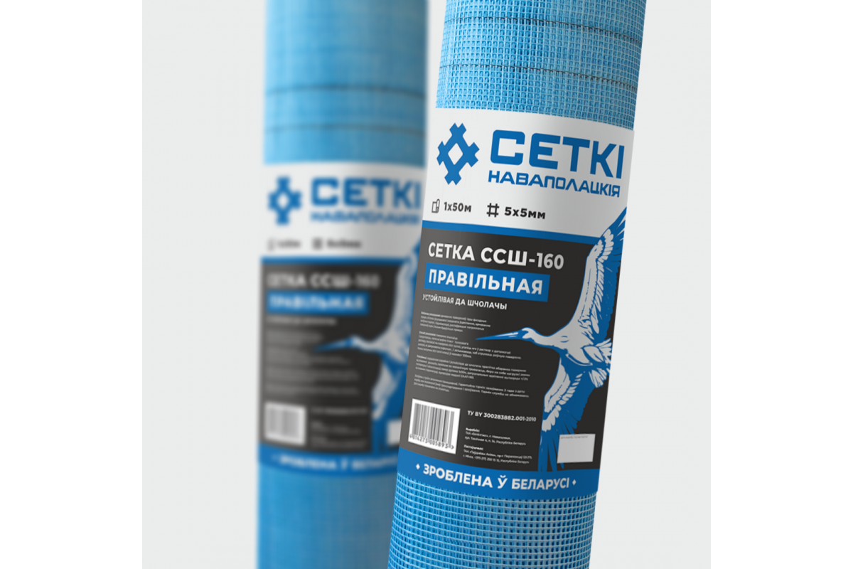 Стеклосетка штукатурная 5х5, 1мх50м, ССШ-160 ПРАВIЛЬНАЯ синяя РБ (СЕТКI НАВАПОЛАЦКIЯ)