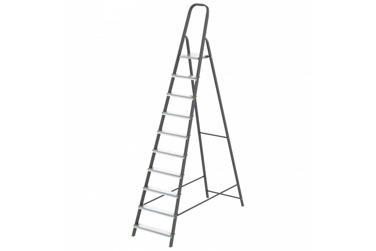 Стремянка, 10 ступеней, стальной профиль, алюминиевые ступени Россия Сибртех