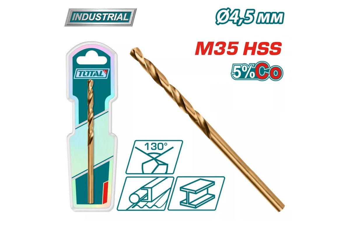 Сверло по металлу M35 HSS-CO 4,5мм TOTAL TAC11204501