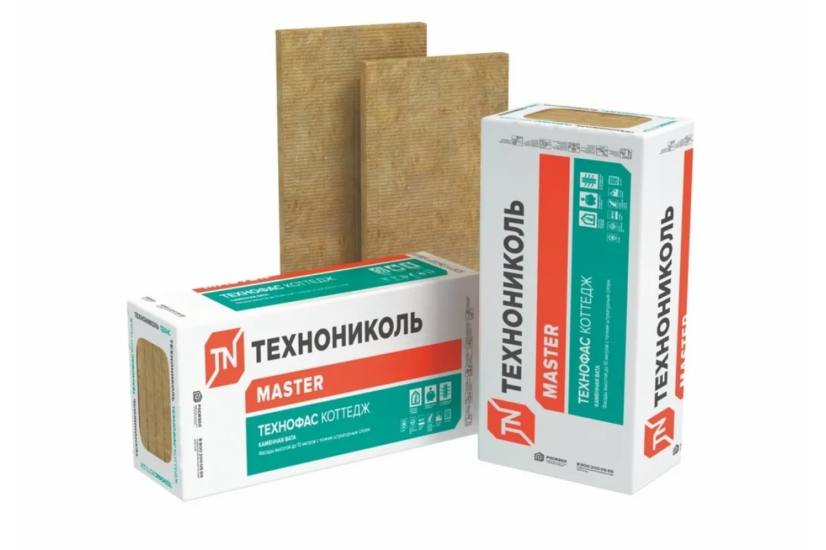 ТЕХНОНИКОЛЬ ТЕХНОФАС КОТТЕДЖ Негорючие плиты из каменной ваты для тепло-звукоизоляционного слоя в системах штукатурного фасада 600*1200*100мм, плотность 105 (±10) кг\м³, в упаковке 3 плиты (0,216м³) 2,16м²
