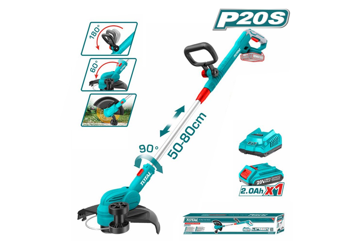 - Триммер TOTAL TGTLI20301 входит в линейку инструментов TOTAL P20S и совместим со всеми аккумуляторами TOTAL 20В - TFBLI20011, TFBLI2002, TFBLI2053.