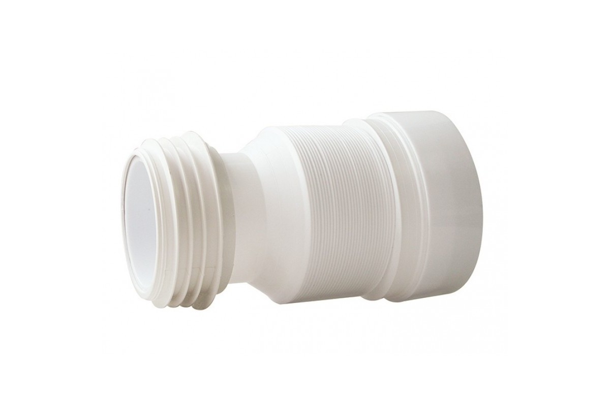 Труба для унитаза гофрированная используется для соединения унитаза и канализационного стояка. Изготовлена из пластика. Подключение осуществляется через манжету без применения герметика.