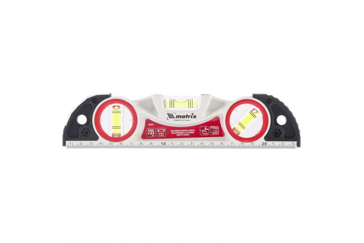 Уровень алюминиевый литой, фрезерованный, 3 глазка, две ударные площадки, 235 мм Matrix