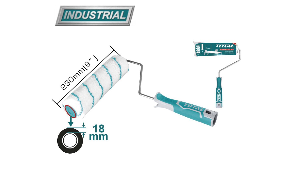 - Индустриальная роликовая кисть 230мм TOTAL THT8593D (валик) предназначена для нанесения краски на средне шероховатые поверхности.