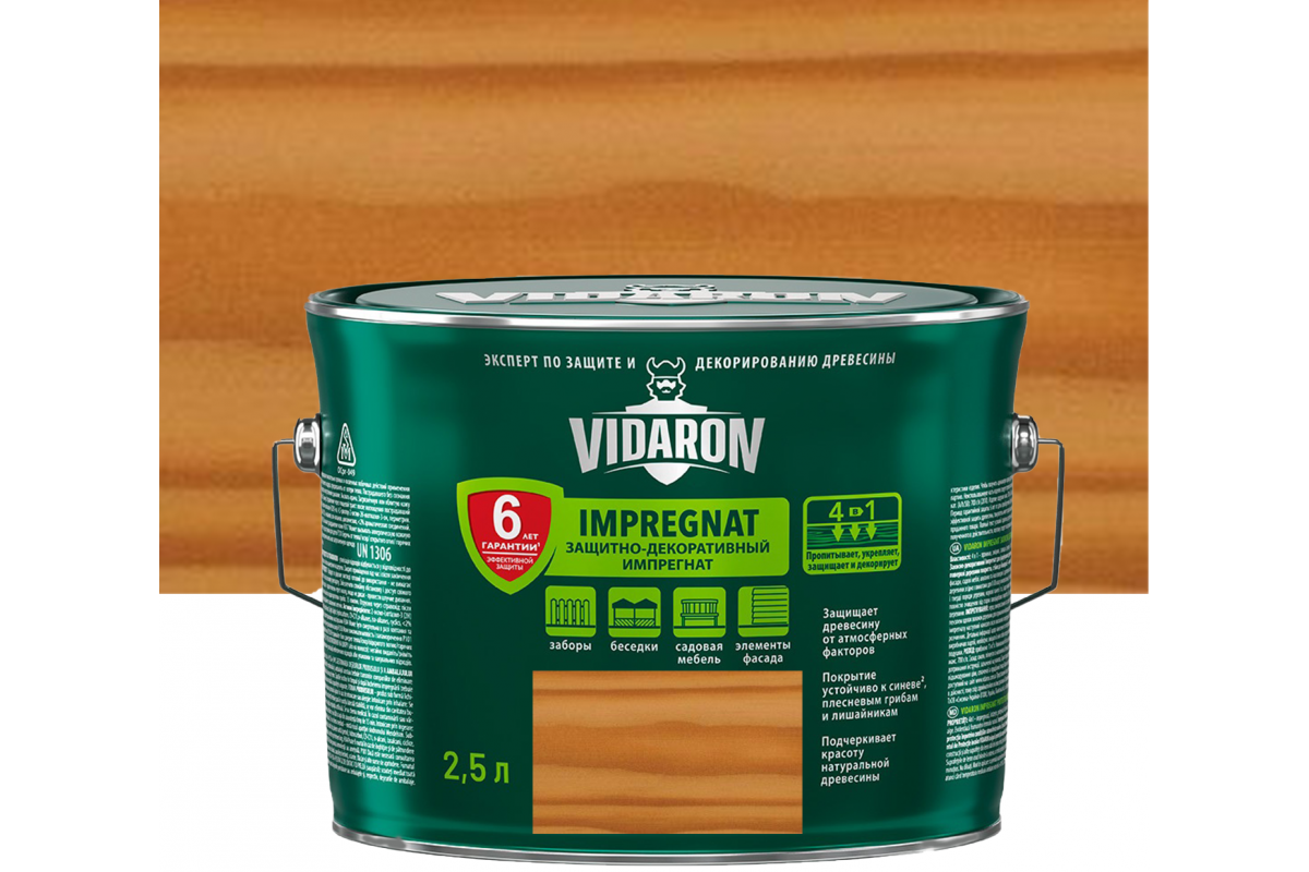 VIDARON IMPREGNAT Защитно-декоративная пропитка Натуральный тик V05 2,5л
