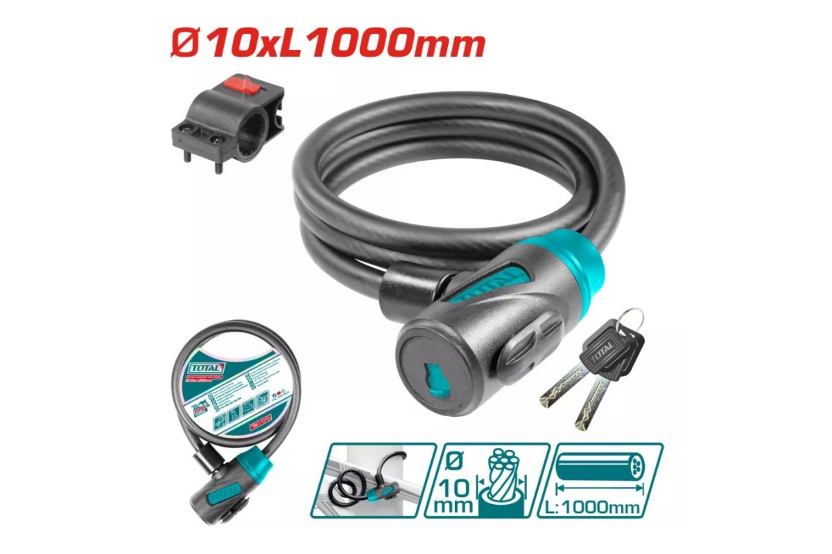 Замок велосипедный 10X1000 мм TOTAL TBK11010